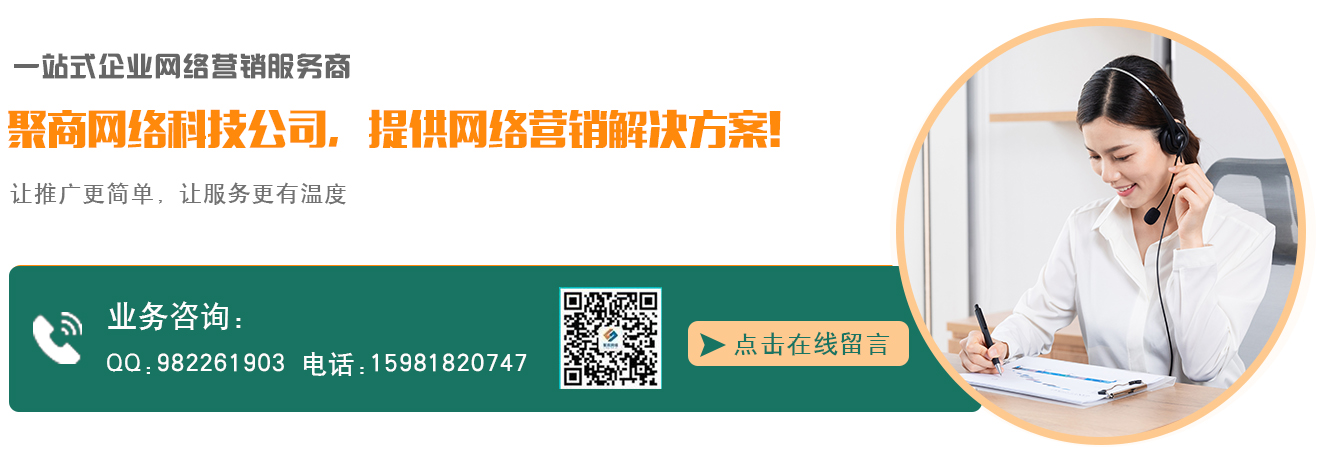聚商網絡作為網絡推廣代運營公司和網絡營銷策劃推廣公司,提供:鄭州網站優化,網絡推廣,網站推廣,網絡營銷,抖音seo,網絡推廣軟文,網絡運營推廣,外貿網絡推廣營銷等,網絡營銷推廣方式有哪些?歡迎咨詢,電話:15981820747.